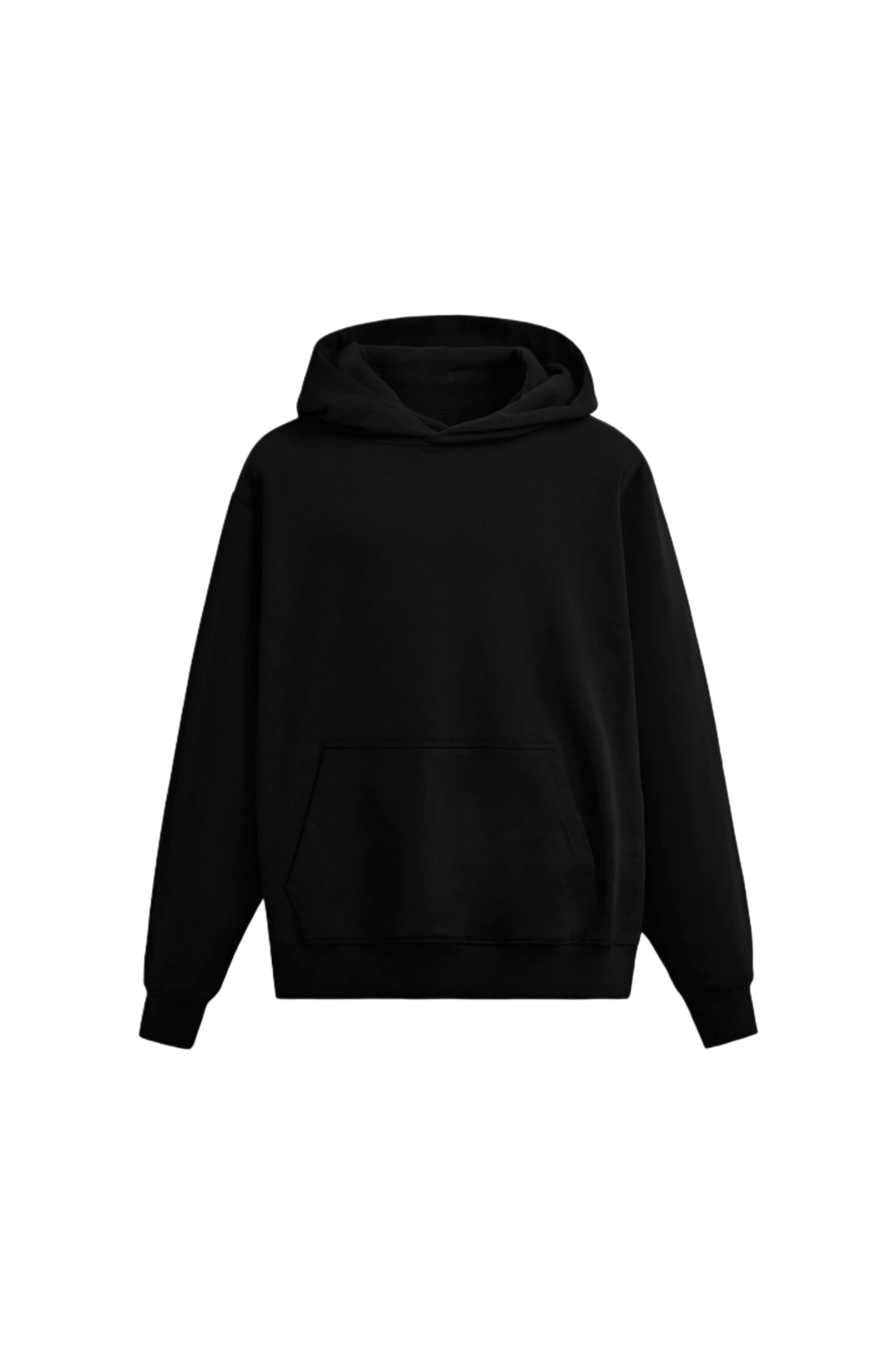 Oversized hoodie crafted from premium 380 GSM heavyweight cotton for a thick, structured drape and soft comfort. Features a jersey-lined drawstring hood, dropped shoulders, and a roomy kangaroo pocket. The brushed interior adds warmth, while wide ribbing at the cuffs and hem keeps the shape clean. Designed for a relaxed, elevated streetwear look with a bold oversized silhouette.