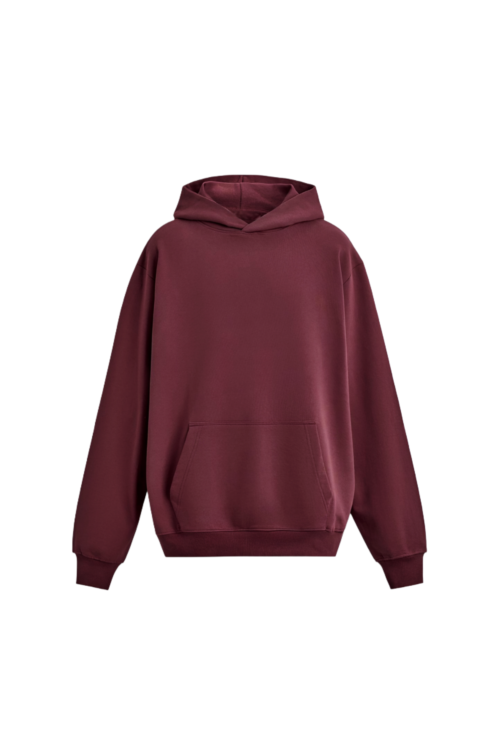 Oversized hoodie crafted from premium 380 GSM heavyweight cotton for a thick, structured drape and soft comfort. Features a jersey-lined drawstring hood, dropped shoulders, and a roomy kangaroo pocket. The brushed interior adds warmth, while wide ribbing at the cuffs and hem keeps the shape clean. Designed for a relaxed, elevated streetwear look with a bold oversized silhouette.